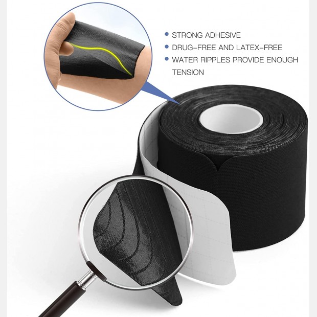 •  set de 2 role benzi kinesiologice pre-tăiate - 20 de benzi de 25 cm lungime si 5 cm lățime.