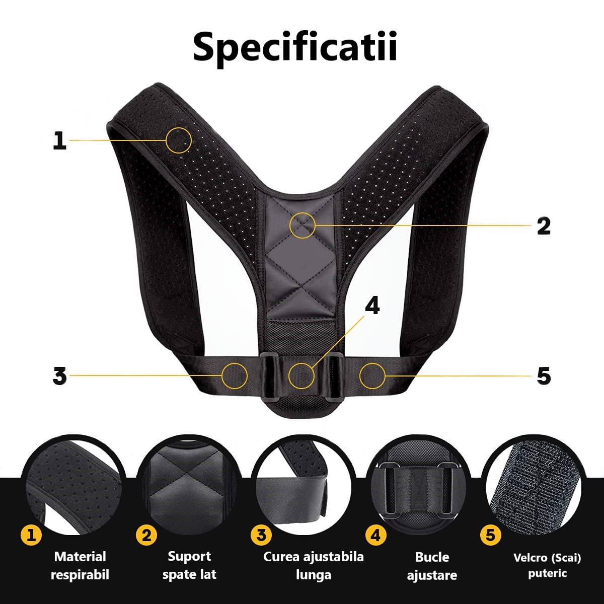 Confortabil de purtat: Corectorul de postură este fabricat din neopren, un material moale dar foarte rezistent care poate fi spălat și uscat de nenumărate ori.